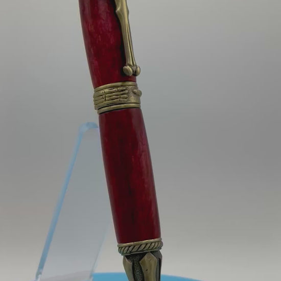 This version showcases a deep crimson resin body with subtle texture that enhances the brass finish, creating a dramatic and fiery presence. A perfect choice for those who want their pen to embody strength and intensity.