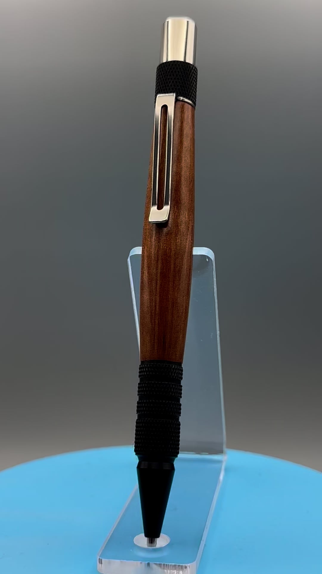 This durable, well balanced, everyday carry mechanical pencil will be sure to fit your everyday life and last for years. It's the ideal companion to one of our Every Day Carry pens. Handcrafted from a medium brown hardwood and trimmed with black aluminum hardware and stainless steel clip. It is lightweight with a solid feel. The knurling at both ends gives it a tactical feel and a comfortable writing experience.